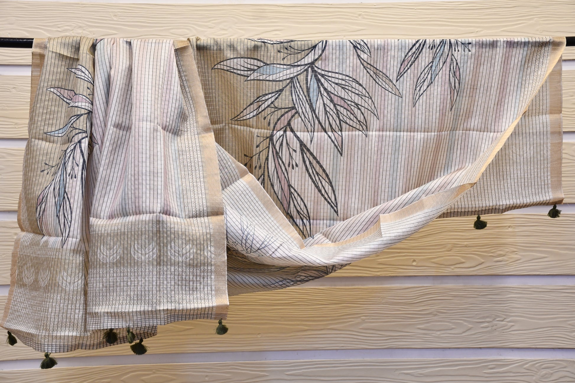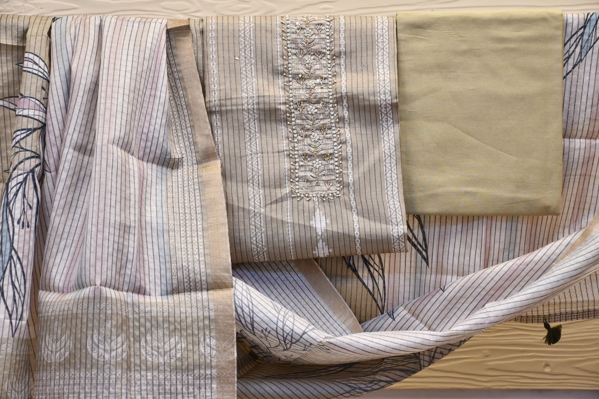 Beige Raw Silk Dress Material with Handwork & Handblock Dupatta – Astitva Collection