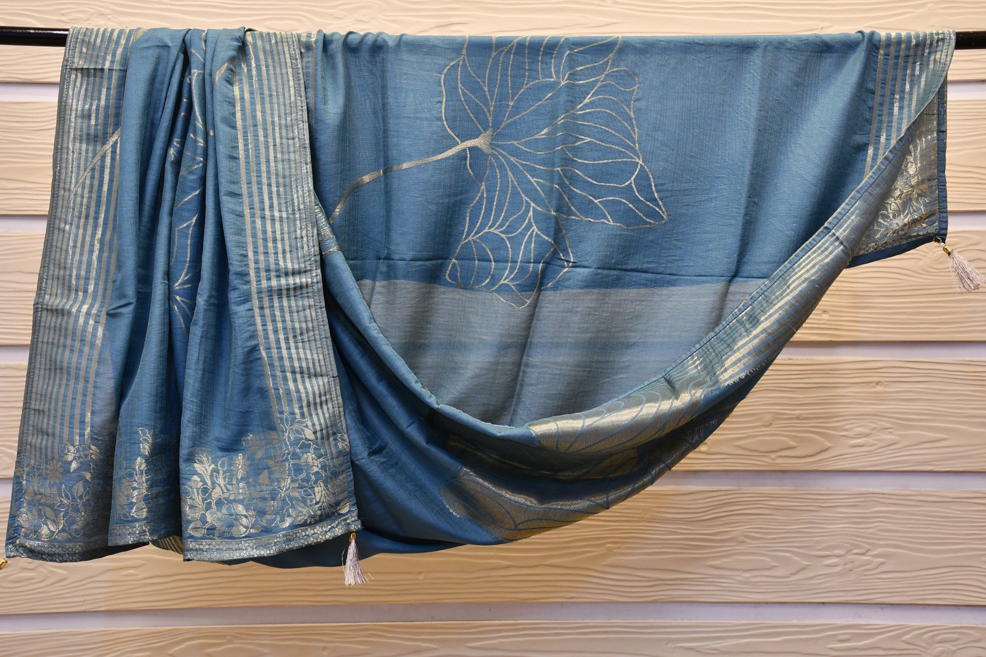 This exquisite art silk dress material features a beautifully designed V-neck and intricate embroidery around the neckline, adding a touch of elegance. The matching bottom complements the look, while the dupatta is adorned with delicate foil work flowers, creating a perfect blend of traditional and contemporary charm. Ideal for special occasions, this set offers comfort and style in one.