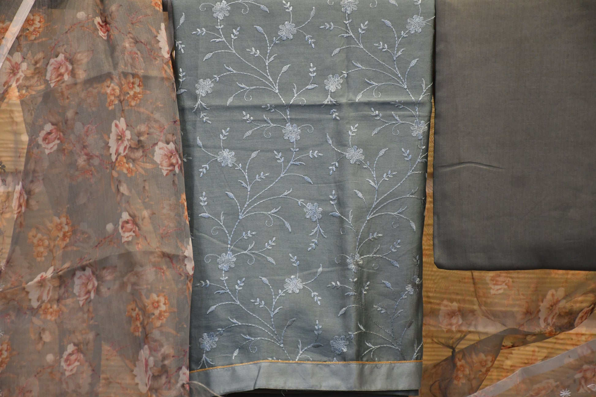 Elegant Silk Dress Material with Intricate Embroidery and Organza Dupatta