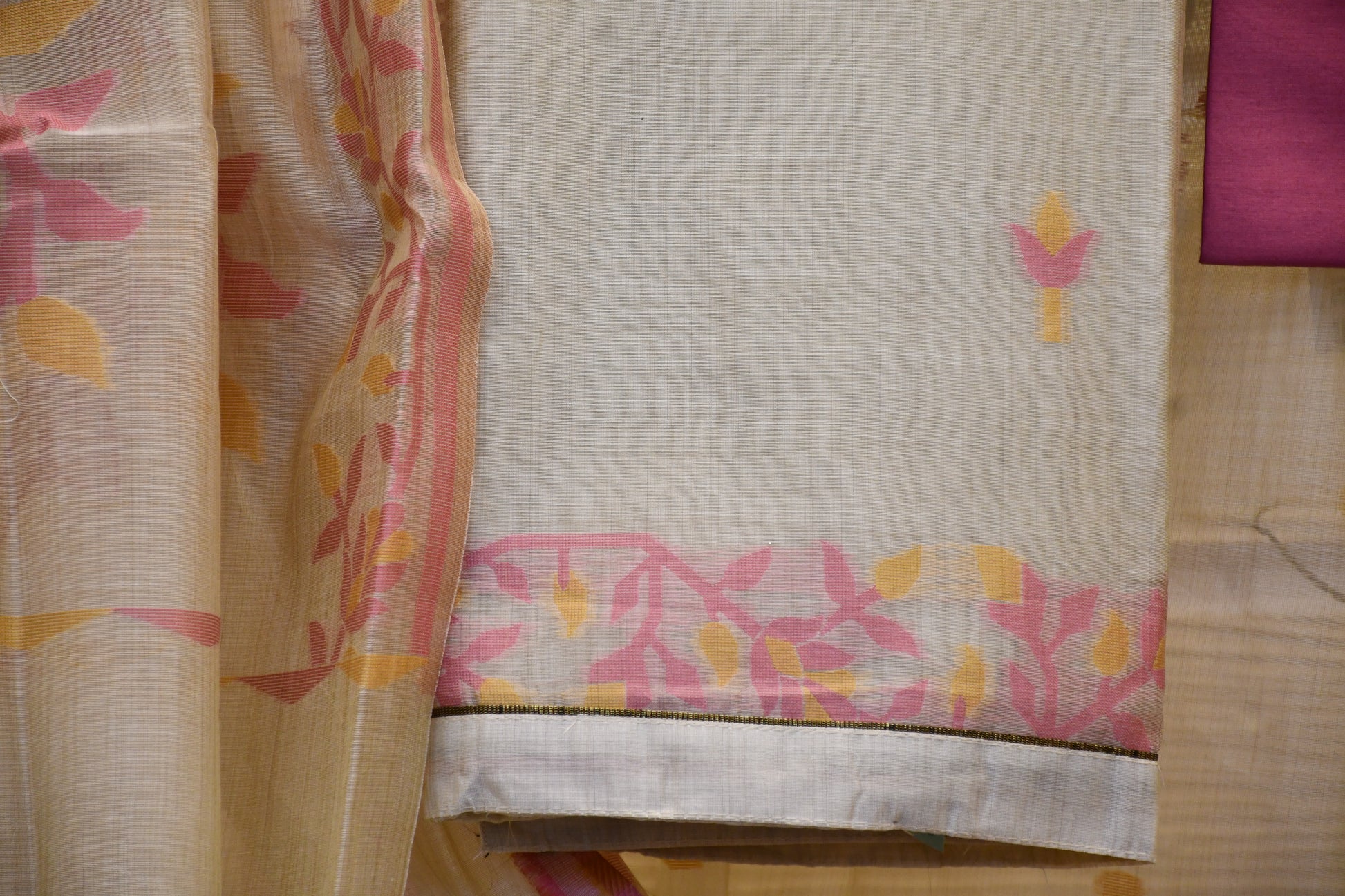 Fabric: Premium Gadhwal fabric, known for its rich texture and luxurious feel.